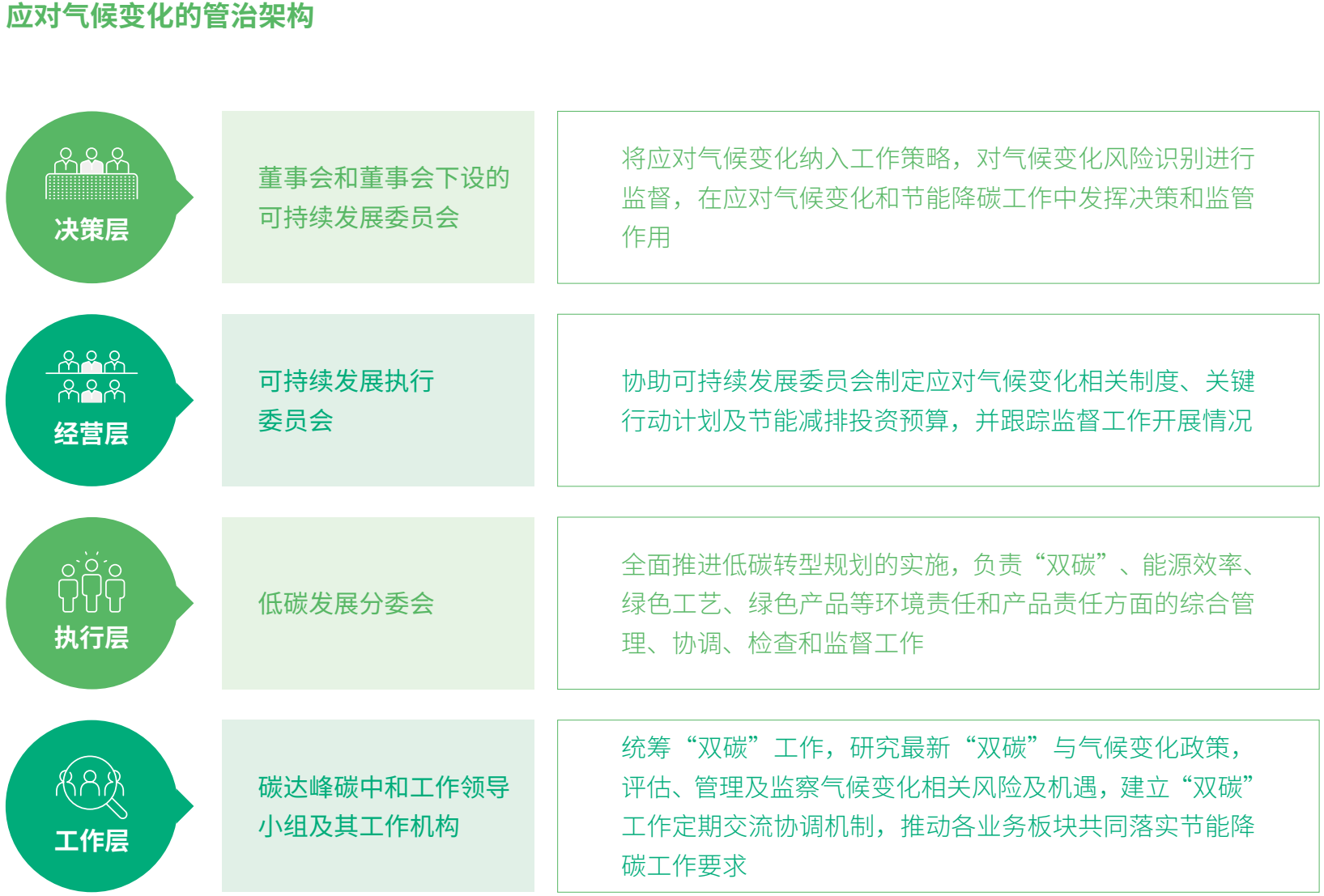 Ag亚洲集团将应对天气转变的管治纳入可一连生长治理架构中,将“低碳生长”作为专项议题举行讨论,从顶层设计出发,自上而下推动“双碳”事情。“双碳”行动计划、目的、行动落实等事项均由董事会认真审媾和羁系。