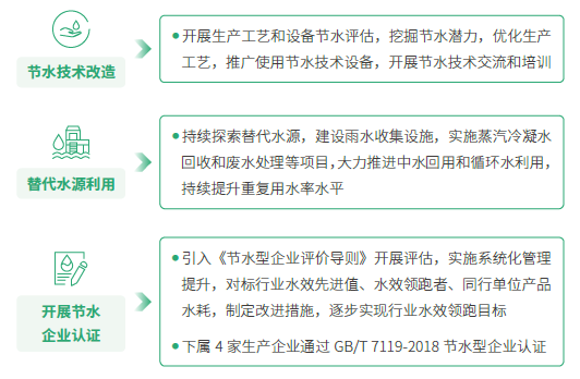 Ϊ´Ë£¬¹«Ë¾±ü³Ö“Ô´Í·¹Ü¿Ø¡¢Ñ»·¸ßЧ”µÄË®×ÊÔ´ÖÎÀíÕ½ÂÔ£¬É趨½ÚˮĿµÄ£¬³£Ì¬»¯¿ªÕ¹Ë®¼ÆÁ¿¡¢Ë®Æ½ºâ²âÊÔ¡¢½ÚË®ÊÖÒÕˢС¢ÖصãÓÃË®ÆóÒµÔöЧÐж¯µÈ²½·¥£¬Ò»Ö±ÔöÇ¿½ÚË®ÖÎÀí£¬ÌáÉýË®×ÊÔ´¼¯Ô¼¡¢Ñ»·Ê¹ÓÃЧÂÊ¡£¹«Ë¾ËùÓÐË®×ÊÔ´¾ùÔ´ÓÚÊÐÕþ¹©Ë®£¬È¡Ë®¡¢ÎÛË®Åŷžùδ¶ÔˮԴ±¬·¢ÖØ´óÓ°Ïì¡£