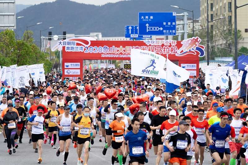 £¨Í¼£º“Öл¯Ä¤¹¤Òµ±”2020Ïóɽ´óÄ¿Íå°ë³ÌÂíÀËÉÈüÃùǹ¿ªÅÜ£©